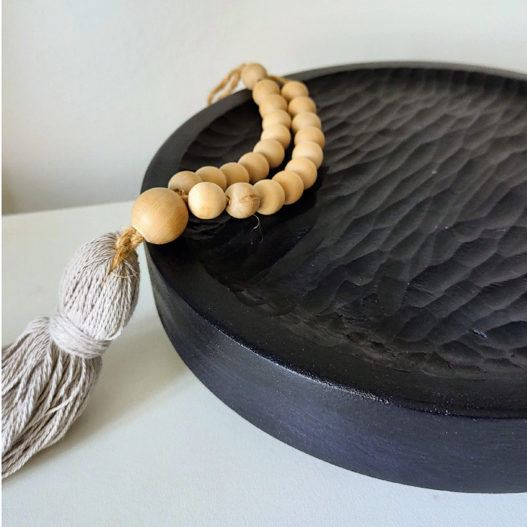 Bandeja circular de madera lenga tallada a mano.